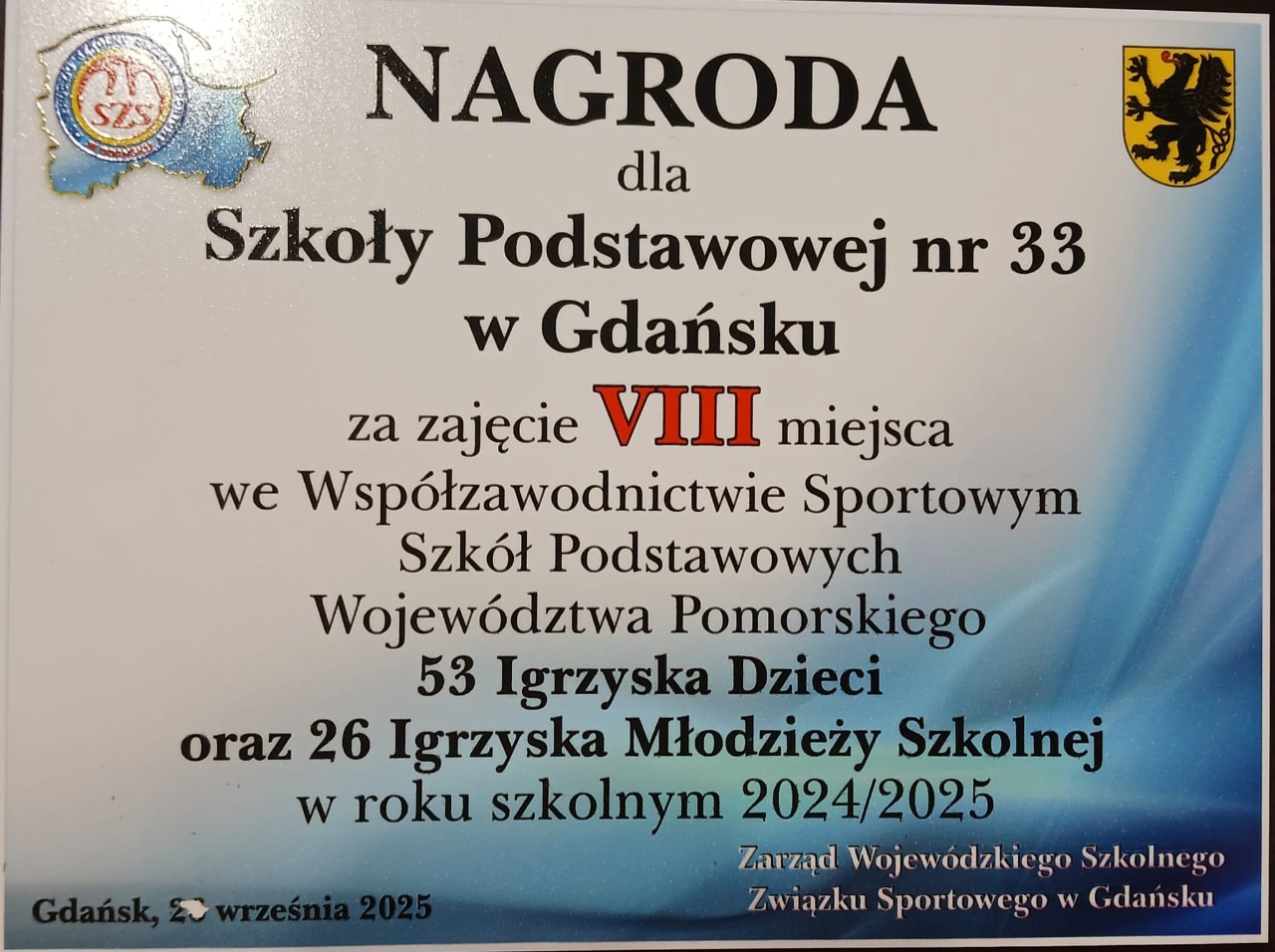 Zdobycie VIII miejsca we współzawodnictwie sportowym szkół podstawowych województwa pomorskiego to dla nas ogromny zaszczyt i efekt pracy wielu osób: