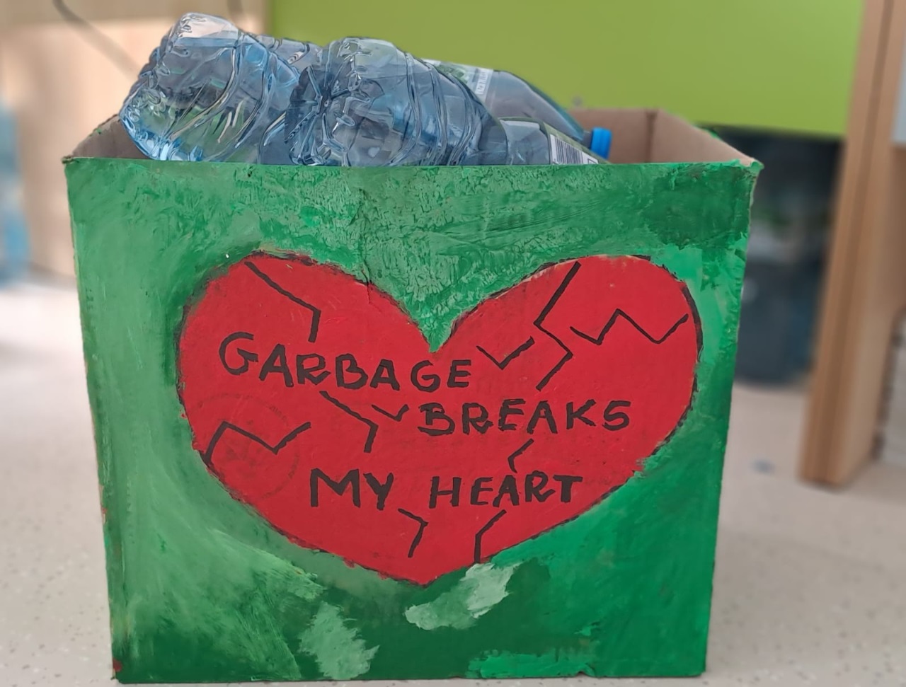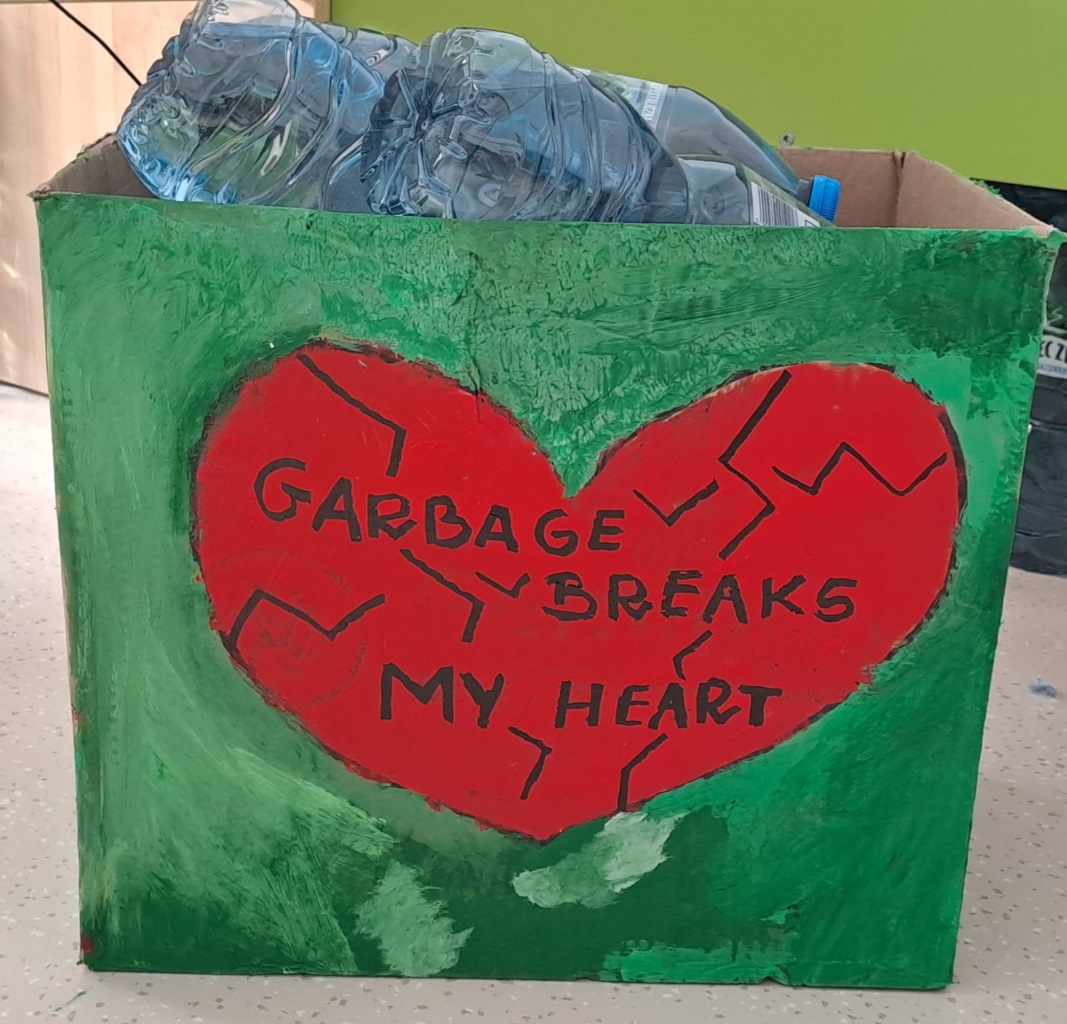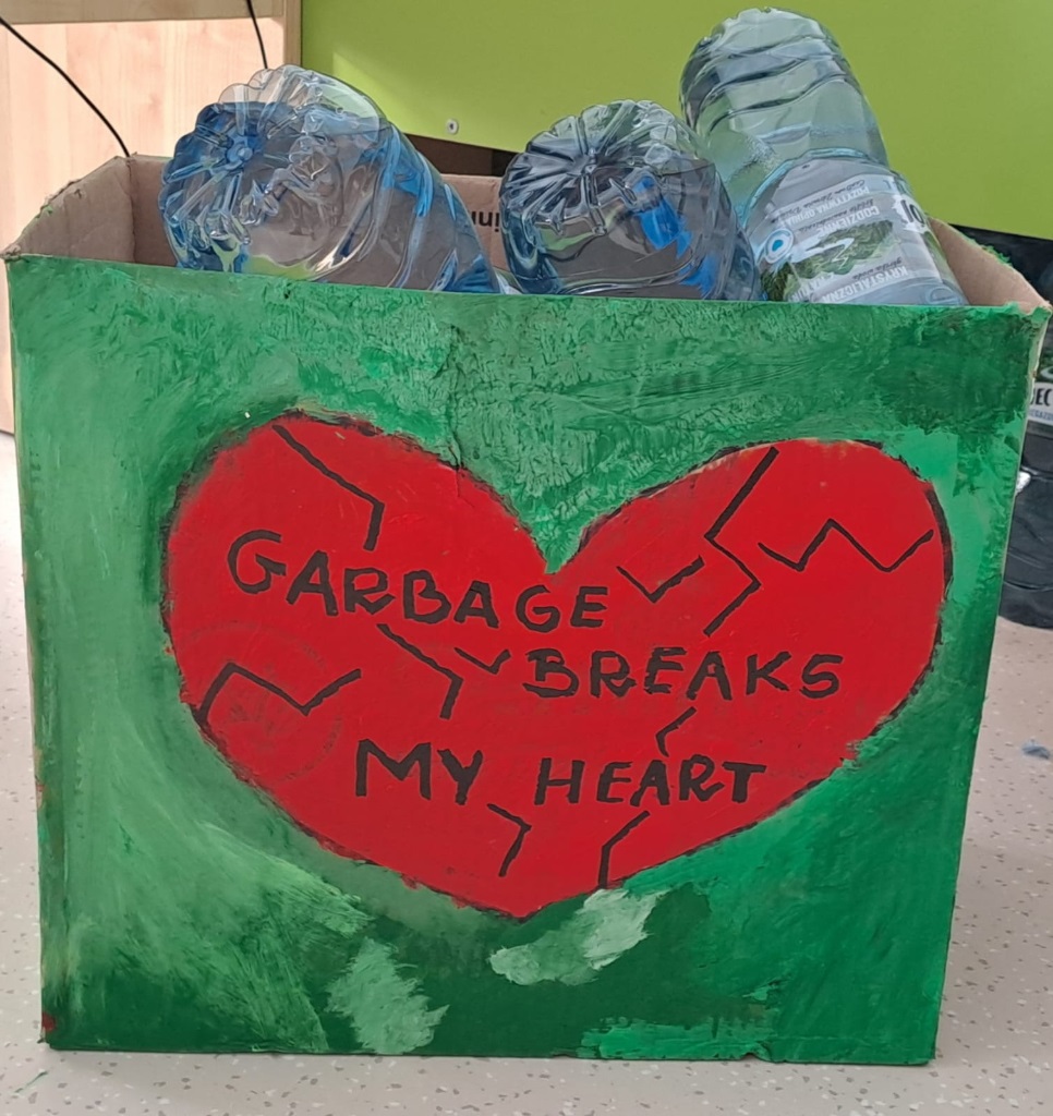 For Valentine's Day, class 3 prepared an eco-friendly box for empty water bottles. "Garbage breaks my heart." This will ensure that all bottles are sorted and none end up in the trash.
