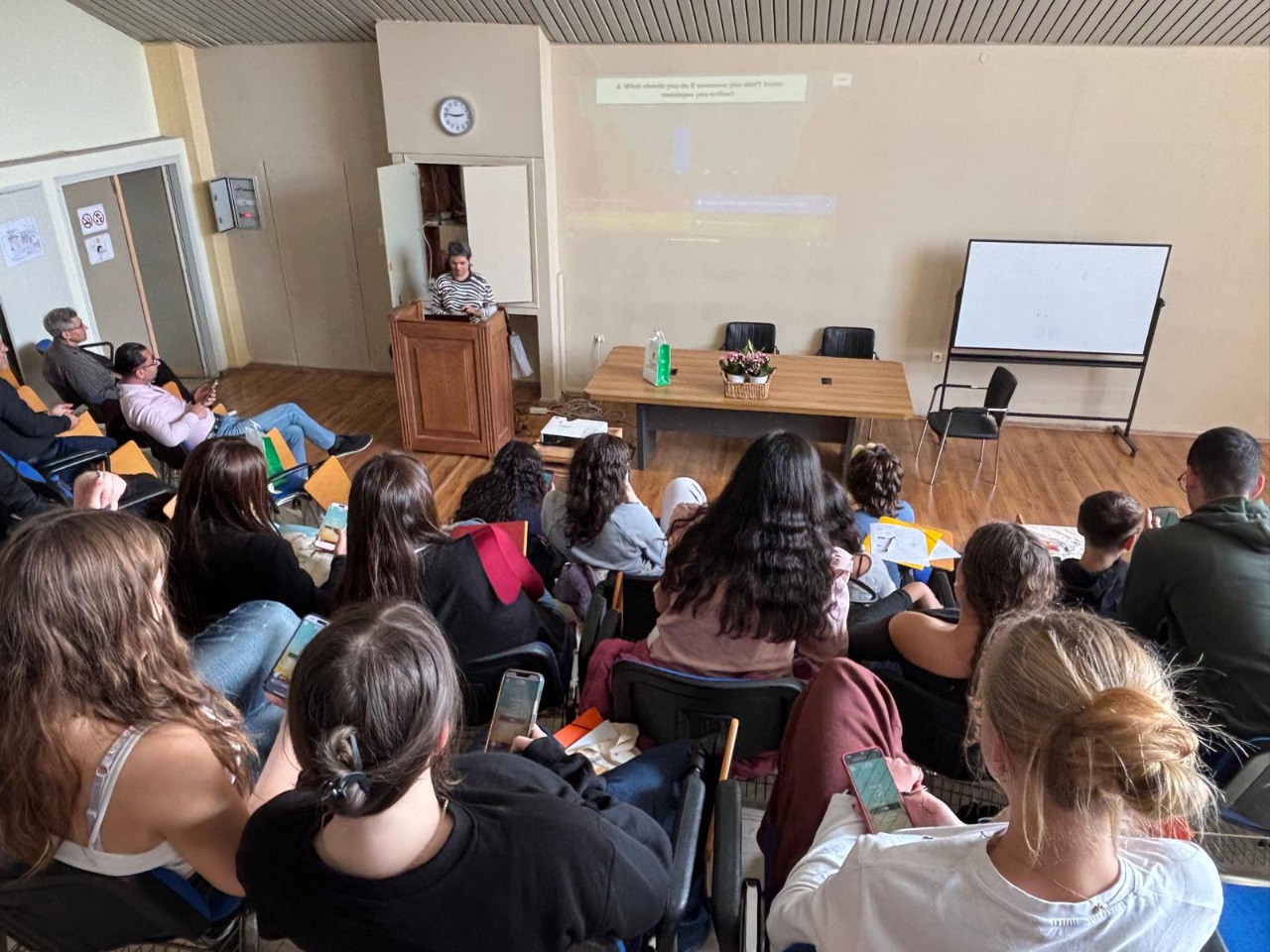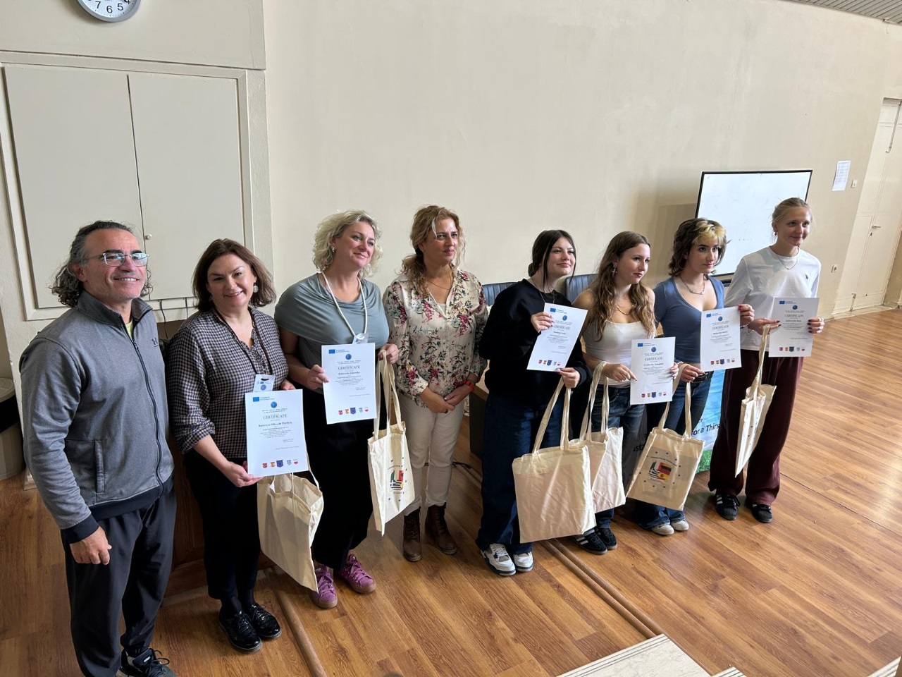 W środę zwiedziliśmy Grecki Uniwersytet Śródziemnomorski. Pokazano nam tam szklarnie i wyjaśniono, w jaki sposób ponownie wykorzystuje się wodę z różnymi składnikami odżywczymi dla roślin. Następnie wróciliśmy do szkoły i uczniowie wzięli udział w warsztatach dotyczących filtrowania wody w celu jej ponownego wykorzystania. Kolejno, każdy z partnerów przedstawił filmiki na temat bezpieczeństwa w internecie, a następnie sprawdziliśmy swoją wiedzę z tego tematu, rozwiązując quizy online. Na koniec dnia odbyła się ceremonia wręczenia certyfikatów.