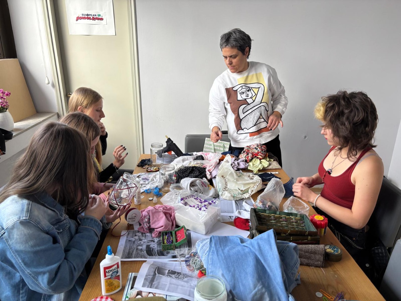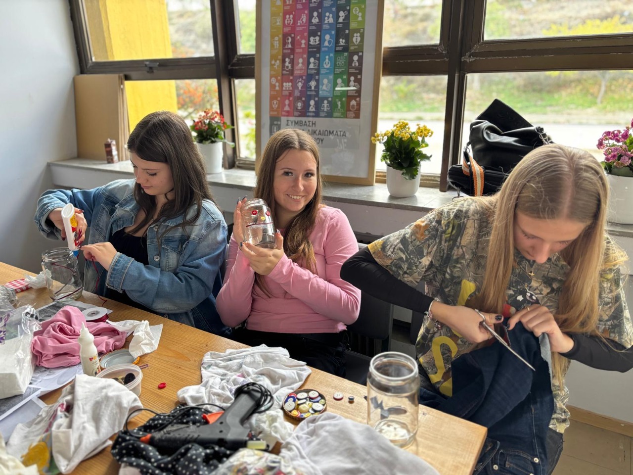W piątek pierwszym etapem naszej pracy było przedstawienie prezentacji na temat produkcji materiałów w naszych krajach. Później mieliśmy możliwość wzięcia udziału w eksperymentach dotyczących naturalnych barwników, prowadzonych przez uczniów greckiej szkoły. Następnie, po krótkiej przerwie, udaliśmy się na zajęcia dotyczące ponownego wykorzystania materiałów. Każdy z uczestników wykonał swój własny projekt ze starych koszulek oraz akcesoriów. Dzień zakończyliśmy wspólnym posiłkiem. Sobotę spędziliśmy z rodzinami goszczącymi, wykonując różne aktywności. Na koniec dnia drużyny uczniów z Grecji oraz Polski udały się na zwiedzanie centrum. Niestety wszystko, co dobre, kiedyś się kończy - w niedzielę stawiliśmy się na lotnisku i rozpoczęliśmy podróż do domu L