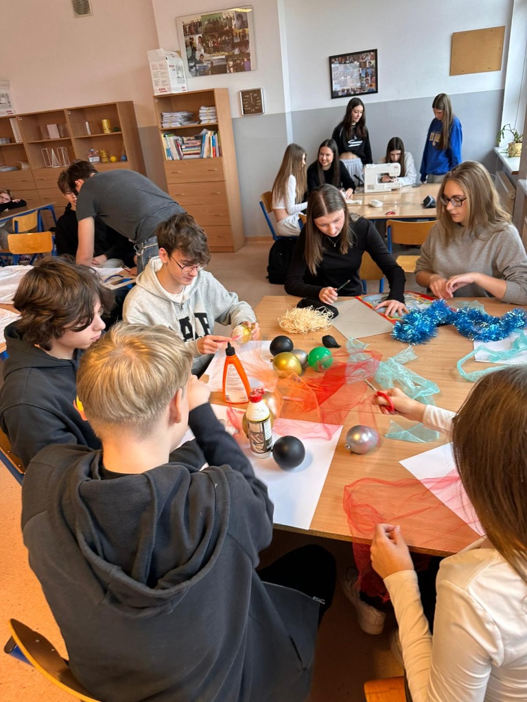 Uczniowie klasy 2a XXIV LO wzięli udział w kolejnej inicjatywie w ramach projektu Erasmus+ „Wear to Care”, której celem było promowanie troski o środowisko oraz twórczego wykorzystywania materiałów z recyklingu. Zadaniem uczniów było przygotowanie świątecznych ozdób dla naszej partnerskiej szkoły z Hiszpanii.